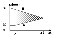 2)作v-t图如右,设A的加速度为aA,由题意可算出2秒末内A、B间的距离为: