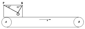 2、计算题  如图所示,方形木箱质量为M,其内用两轻绳将一质量m=0.1kg的小球悬挂于P、Q两点,两细绳与水平的车顶面的夹角为60°和30°。水平传送带AB长l=30m,以v=15m/s的速度顺时针转动,木箱与传送带间动摩擦因数μ=0.75,(g=10 m/s2)求: