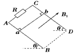 5、计算题 如图所示,AB、CD是两根足够长的固定平行金属导轨,两导轨间的距离为L,导轨平面与水平面间的夹角为θ,在整个导轨平面内都有垂直于导轨平面斜向上方的匀强磁场,磁感应强度为B1,在导轨的AC端连接一个阻值为R的电阻,一根质量为m垂直于导轨放置的金属棒ab,从静止开始沿导轨下滑,已知金属棒ab与导轨间的动摩擦因数为μ,导轨和金属棒的电阻不计。求