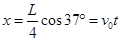 1、填空题 如图所示,有一倾角为370长为L=10m的斜面AE,B、C、D三点分别为斜面的四等分点,现有一大小可以忽略不计的小球在E点正上方与A点等高处以初速度