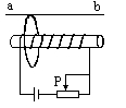 2、选择题 如图9所示,光滑杆ab上套有一闭合金属环,环中有一个通电螺线管。现让滑动变阻器的滑片P迅速滑动,则( ?)