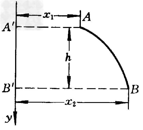 1、填空题 一位同学做平抛实验时,只在纸上记下重垂线у方向,未在纸上记下斜槽末端位置,并只描出如图所示的一段平抛轨迹曲线. 现在曲线上取A ,B 两点,用刻度尺分别量出到у的距离,AA"=x1,BB"=x2,以及AB 的竖直距离h,从而可求出小球抛出的初速度υ0为?。