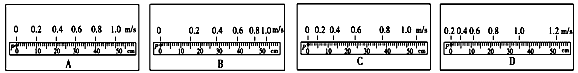 5、实验题 物理实验小组利用如图所示装置测量物体平抛运动的初速度。他们经多次实验和计算后发现:在地面上沿抛出的速度方向水平放置一把刻度尺,让悬挂在抛出点处的重锤线的投影落在刻度尺的零刻度线上,则利用小球在刻度尺上的落点位置,就可直观地得到小球做平抛运动的初速度。如图四位同学在刻度尺旁边分别制作了速度标尺(图中P点为重锤所指位置),可能正确的是___________。
