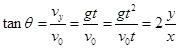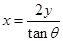 5、选择题 在一次救灾活动中,从水平飞行的直升机上投掷救灾物资。设飞机水平飞行的速度为v0,离地面高度为h,则当物资的速度方向与水平方向成θ时,物资的水平位移x与竖直位移y的关系为(不计空气阻力)