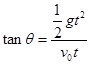 本题解析:设斜面倾角为θ,若小球抛出的速度较小,两次均落在斜面上,因此有:tanθ=