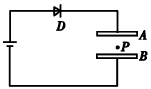 3、选择题 如图所示,D是一只二极管,AB是平行板电容器,在电容器两极板间有一带电微粒P处于静止状态,当两极板A和B间的距离增大一些的瞬间(两极板仍平行),带电微粒P的运动情况是