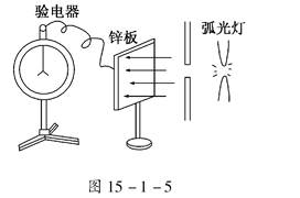 4、填空题 在演示光电效应的实验中,原来不带电的一块锌板与灵敏验电器相连,用弧光灯照射锌板时,验电器的指针张开一个角度,如图15-1-5所示,这时锌板带________电,指针带________电.