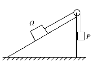 2、选择题 如图所示,固定在水平地面上的斜面体顶端安装一定滑轮,两物块P?Q用轻绳连接并跨过定滑轮,P悬于空中,Q放在斜面上,均处于静止状态.不计滑轮的质量和绳子与滑轮间的摩擦,当用竖直向下的恒力推Q时,P?Q仍静止不动,则(? )