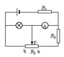 4、选择题  如图所示,E为有内阻的电源,R1为滑动变阻器,R2、R3为定值电阻,A、V为理想电表.电键闭合后,当滑动片P由a滑至b时,下列说法中可能正确的是(  )
