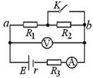 2、选择题  如图所示电路中,电源电动势E恒定,内阻 ,两电表均为理想电表,定值电阻