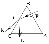 4、选择题 如图所示,一束由M、N两种单色光组成的复色光P沿图示方向垂直射向一等腰三棱镜AB边上,在O点处N光发生全反射,则以下说法正确的是: