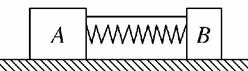 4、选择题 如图所示,在光滑水平面上,有质量分别为2m和m的A、B两滑块,它们中间夹着一根处于压缩状态的轻质弹簧,由于被一根细绳拉着处于静止状态.当剪断细绳,在两滑块脱离弹簧之后,下述说法正确的是: