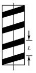 2、选择题  在街头的理发店门口,常可以看到这样的标志:一个转动的圆筒,外表有彩色螺旋斜条纹,我们感觉条纹在沿竖直方向运动,但实际上条纹在竖直方向并没有升降,这是由于圆筒的转动而使我们的眼睛产生的错觉,如图所示,假设圆筒上的条纹是围绕圆筒的一条宽带,相邻两圈条纹在沿圆筒轴线方向的距离(即螺距)为L,如果我们观察到条纹以速度v向上运动,则圆筒的转动情况是(从上往下看)(?)
