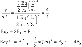 参考答案:解:建立直角坐标系,初速度方向为x轴方向,垂直于速度方向为y轴方向。设粒子的的质量m,带电量为q,初速度v,匀强电场为E,在y方向的位移为y,速度为2v时通过匀强电场的偏移量为y′,平行板板长为L。由于带电粒子垂直于匀强电场射入,粒子做类似平抛运动