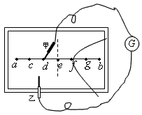 2、实验题 在做“电场中等势线的描绘”的实验时,先在导电纸上画出电极a和b(模拟为点电荷)的连线,在连线上选取间距大致相等的5个点c、d、e、f、g,如图所示。G为灵敏电流表,甲、乙为两探针,在实验时将a、b接入电源。
