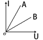 1、选择题  A、B两电阻串联后接入电源,改变电源的电压,测得电阻A、B的伏安特性曲线如图7所示,则电阻RA、RB和功率PA、PB的关系是