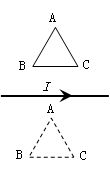 4、选择题 如图所示,一个闭合三角形导线框ABC位于竖直平面内,其下方(略靠前)固定一根与线框平面平行的水平直导线,导线中通以图示方向的恒定电流。释放线框,它由实线位置下落到虚线位置未发生转动,在此过程中: