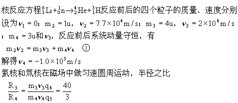 m/s,方向与入射中子的速度方向相同,求 粒子和反应生成核在磁场中的径迹轨道半径之比。