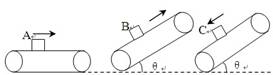 3、选择题 如图所示,A、B、C三个物体质量相等,它们与传送带间的动摩擦因数也相同。三个物体随传送带一起匀速运动,运动方向如图中箭头所示。则下列说法正确的是(?)