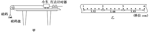 (1)在平衡小车与桌面之间摩擦力的过程中,打出了一条纸带如图乙所示.计时器打点的时间间隔为0.02 s.从比较清晰的点起,每5个点取一个计数点,量出相邻计数点之间的距离.该小车的加速度a=________ m/s2.(结果保留两位有效数字)