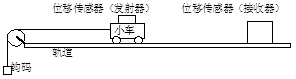 2、实验题 右图为“用DIS(位移传感器、数据采集器、计算机)研究加速度和力的关系”的实验装置。