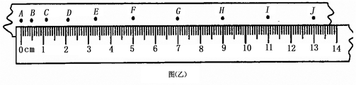 ③ 如图乙所示,A、B、C、……I、J是打点计时器在纸带上打出的一系列点,根椐所测得的数据可以求得小车被橡皮筋弹出后获得的最大速度大小为_________m/s.(电源频率为50Hz)