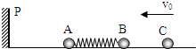 3、简答题 两个小球A和B用轻弹簧相连,在光滑的水平直轨道上处于静止状态.在它们左边有一垂直于轨道的固定挡板P,右边有一小球C沿轨道以速度v0射向B球,如图所示,C与B发生碰撞并立即结成一个整体D.在它们继续向左运动过程中,当弹簧长度变到最短时,长度突然被锁定,不再改变.然后,A球与挡板P发生碰撞,碰后A、D都静止不动,A与P接触而不粘连.过一段时间,突然解除锁定(锁定及解除锁定均无机械能损失).已知A、B、C三球的质量均为m.