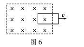 3、选择题 如图6所示,闭合导线框的质量可以忽略不计,将它从如图所示位置匀速向右拉出匀强磁场.若第一次用0.3 s拉出,外力所做的功为W1,通过导线横截面的电荷量为q1;第二次用0.9 s拉出,外力所做的功为W2,通过导线横截面的电荷量为q2,则?( )