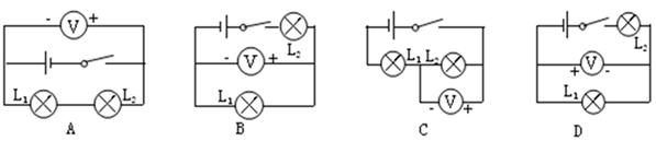 2、选择题 在下列所示的电路图中,能用电压表正确测出灯L1两端电压的是