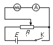 1、实验题 实验室内有一电压表mV ,量程为150mV,内阻约为150Ω。现要将其改装成量程为10mA的电流表,并进行校准。为此,实验室提供如下器材:干电池E(电动势为1.5V),电阻箱R,滑线变阻器R′,电流表A(有1.5mA,15mA与150mA三个量程)及开关K。