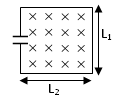 2、填空题 如图所示,在匀强磁场中,有一接有电容器的导线回路,已知C="30" u F, L1=5cm,L2=8cm磁场以