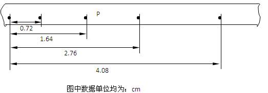 4、实验题  下图是他在实验中得到的一条纸带,图中相邻两计数点之间的时间间隔为0.1s,由图中的数据可算得小车的加速度a为         m/s2;P点的速度是        m/s。
