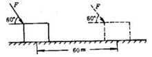 5、选择题 在光滑水平面上,一个人用100N的力与水平方向成60o角推一个箱子前进6m,如图所示,则推力所做的功是? (? )