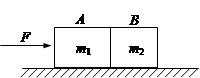 4、选择题 如图所示,两物体A和B,质量分别为m1和m2相互接触放在水平面上.对物体A施以水平的推力F,使A和B一起向右作匀加速直线运动,则物体A对物体B的作用力等于:(?)