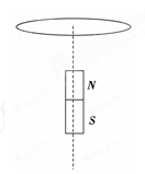 4、选择题 如图所示,水平放置的圆形铜线圈沿着条形磁铁的竖直轴线自由下落.问,在它穿过条形磁铁的过程中( )