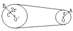 5、填空题 如图所示的皮带传动装置,大轮的半径为小轮的2倍,A、B分别是小轮和大轮边缘上的点,皮带不打滑且匀速转动,则A、B两点的线速度之比是??;角速度之比是??;向心加速度之比是??。