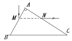 2、计算题 如图所示,为某种材料制成的三棱镜截面ABC,底边BC水平且镀银,其中,角A=90°角B=60°一束竖直向下的光束,从AB边上的M点入射,经过BC面反射后,从AC边上的N点平行于BC边射出,且MN连线与BC平行。