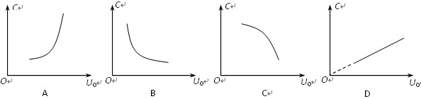 由数学知识分析,当c增大时,U0增大,c与U0是非线性关系,图象是直线,而且是增函数.故D正确.