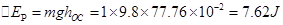 (3)重力势能的减小量等于7.62 J,动能的增加量等于7.57 J。