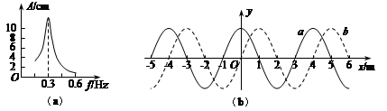 2、选择题 如图,(a)为一波源的共振曲线,(b)图中的a、b表示该波源在共振状态下的振动形式沿x轴传播过程中形成的简谐横波在先后两个时刻的波形曲线。则下列说法错误的是( )