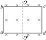 4、实验题 如图所示,一个矩形线圈abcd,已知ab为l1,ad为l2,在磁感应强度为B的匀强磁场中绕OO′轴以角速度ω(从图中位置开始)匀速转动.则线圈中感应电动势的大小为____________.