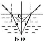 2、简答题 如图10所示,在清澈平静的水底,抬头向上观察,会看到一个十分有趣的景象: