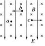 4、选择题 如图所示,匀强电场E竖直向下,匀强磁场B垂直纸面向里.现有三个带有等量同种电荷的油滴a、b、c,若将它们分别置入该区域中,油滴a保持静止,油滴b向左水平匀速运动,油滴c向右水平匀速运动,不计空气阻力,比较三个油滴所受重力(?)