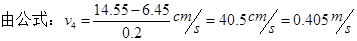 2、实验题 在“测定匀变速直线运动的加速度”的实验中,计时器所用电源的频率为50Hz,图为一次实验得到的一条纸带,纸带上每相邻的两计数点间都有四个点未画出,按时间顺序取0、1、2、3、4、5六个计数点,用刻度尺量出1、2、3、4、5点到0点的距离如图所示(单位:cm)。则打计数点4时纸带的速度大小v4=________m/s,小车的加速度大小a=________m/s2。(保留三位有效数字)