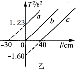 (2)如果实验中所得到的T2—l关系图象如图乙所示,那么真正的图象应该是a、b、c中的_____;