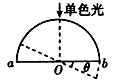 5、填空题 如图所示,一束单色光沿半圆柱形玻璃砖的半径垂直ab面入射,有光线从ab面射出,以0点为圆心,当将玻璃砖缓慢转过θ角时,恰好没有光线从ab面射出,则该玻璃砖的折射率为____________________。