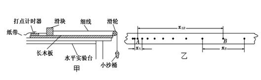 4、实验题 (6分)如图甲是利用滑块验证动能定理的装置,除图示器材外,还有学生电源、导线、复写纸、天平和细沙.