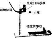 5、实验题 如图,研究平抛运动规律的实验装置放置在水平桌面上,利用光电门传感器和碰撞传感器可测得小球的水平初速度和飞行时间,底板上的标尺可以测得水平位移。