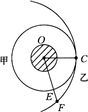 5、选择题 在地表附近某一高度水平发射甲、乙两颗卫星,如图所示,甲卫星绕地球做圆周运动,乙卫星绕地球做椭圆运动.E,F两点分别在两轨道上,且E,F两点和地心在一条直线上,由图可知
