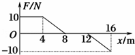 4、选择题 质量为10kg的物体,在变力F作用下沿x轴做直线运动,力随位移x的变化情况如图所示.物体在x=0处速度为1m/s,一切摩擦不计,则物体运动到x=16m处时,速度大小为( )